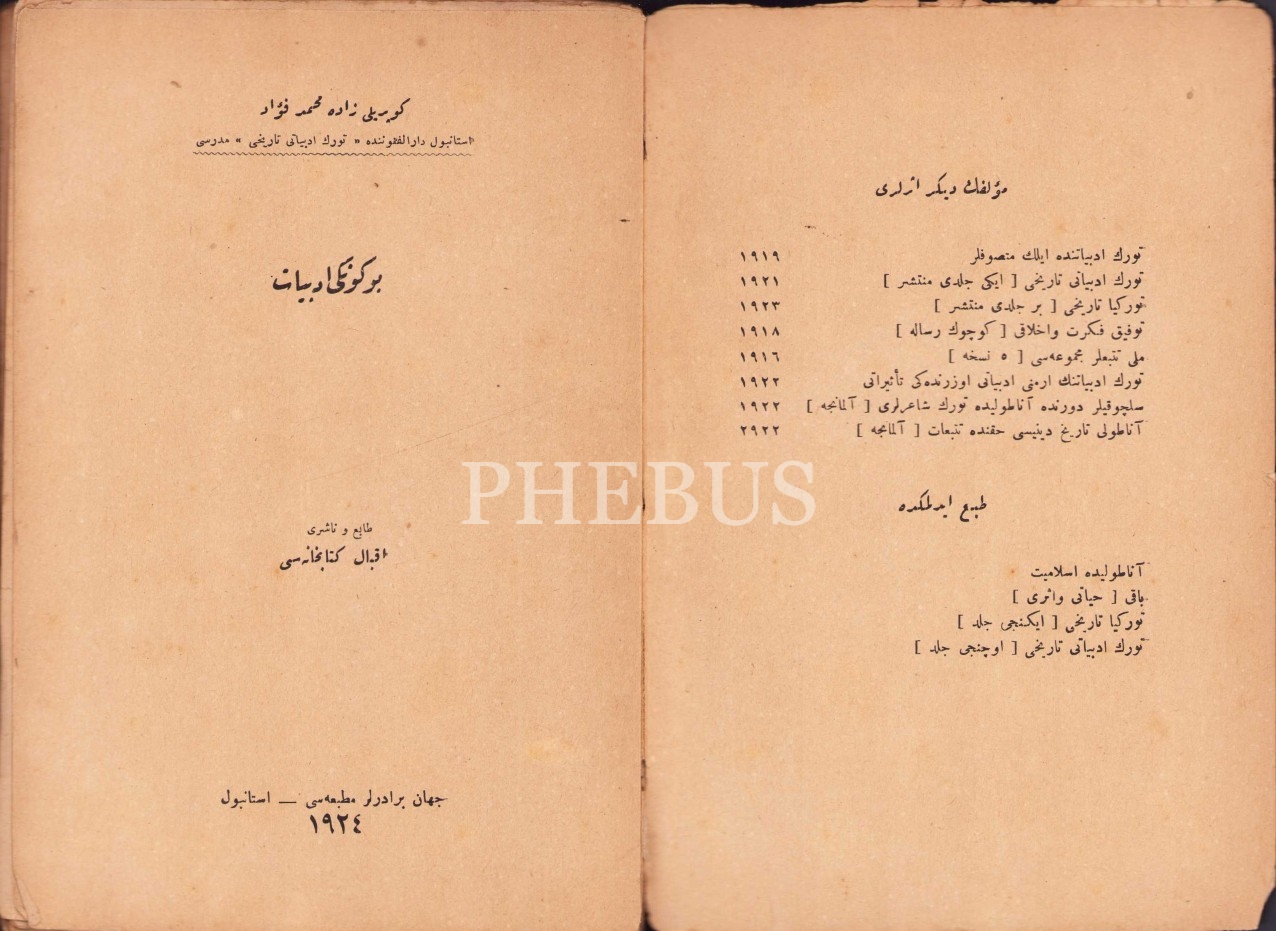 Osmanlıca Bugünkü Edebiyat, Köprülüzade Mehmet Fuad, Hüseyin, Cihan Biraderler Matbaası, İstanbul 1924, sırt bir kenar haliyle, 330 sayfa, 13x20 cm