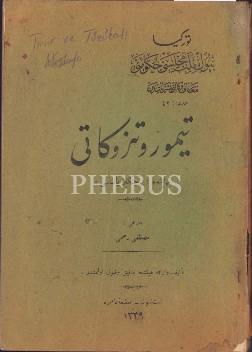 Osmanlıca Timur ve Tüzükatı, Mustafa Rahmi, Matbaa-i Amire, İstanbul 1339, 107 sayfa, 14x20 cm