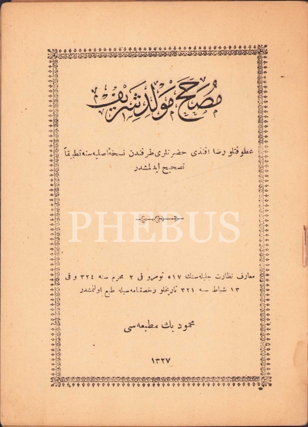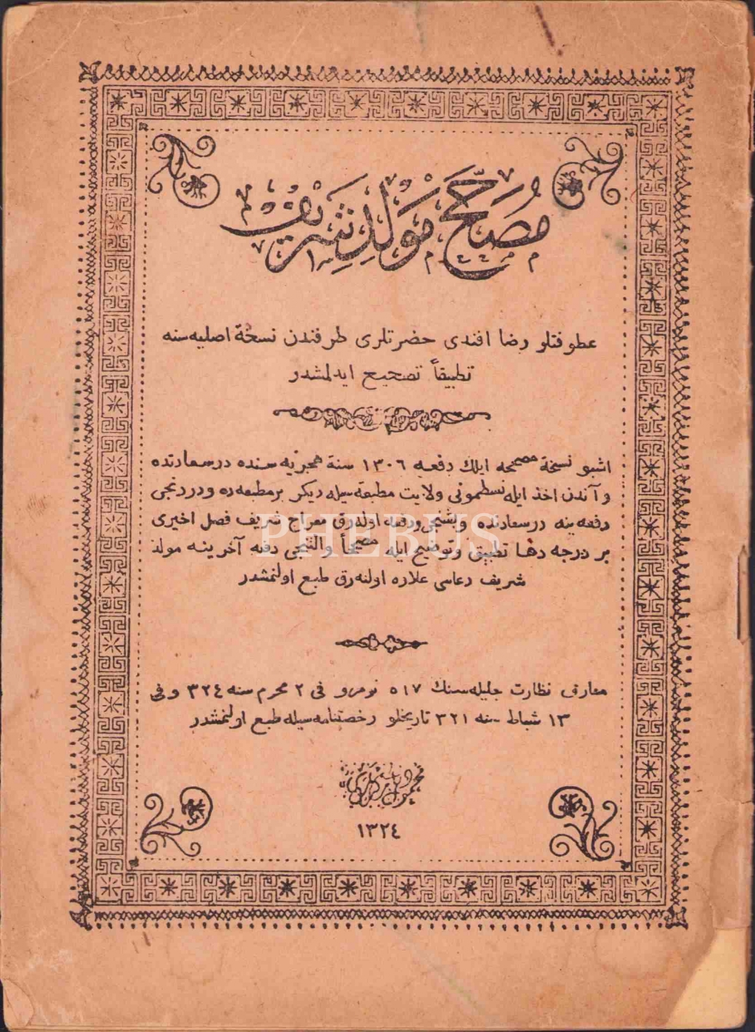 Musahhah Mevlid-i Şerif, Mahmud Bey Matbaası, 1324 baskı, 14x19 cm