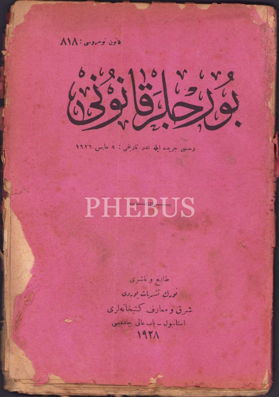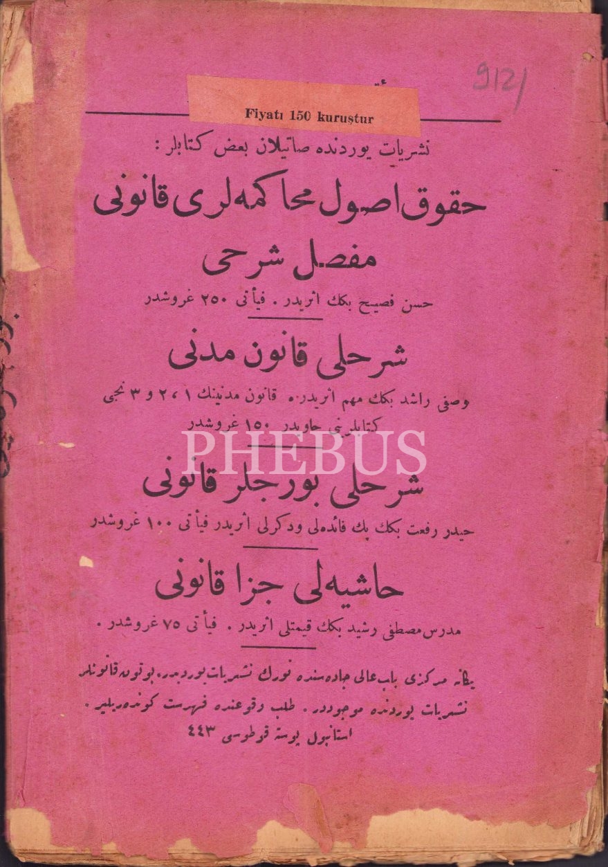 Osmanlıca Borçlar Kanunu, Naci, İstanbul 1928, kapak haliyle, 137 sayfa, 13x19 cm