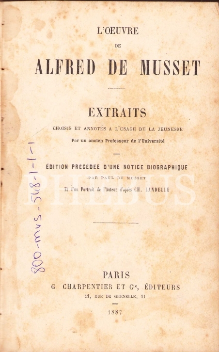 L'oeuvre De Alfred De Musset, Paris 1887, 540 sayfa, 10x17 cm