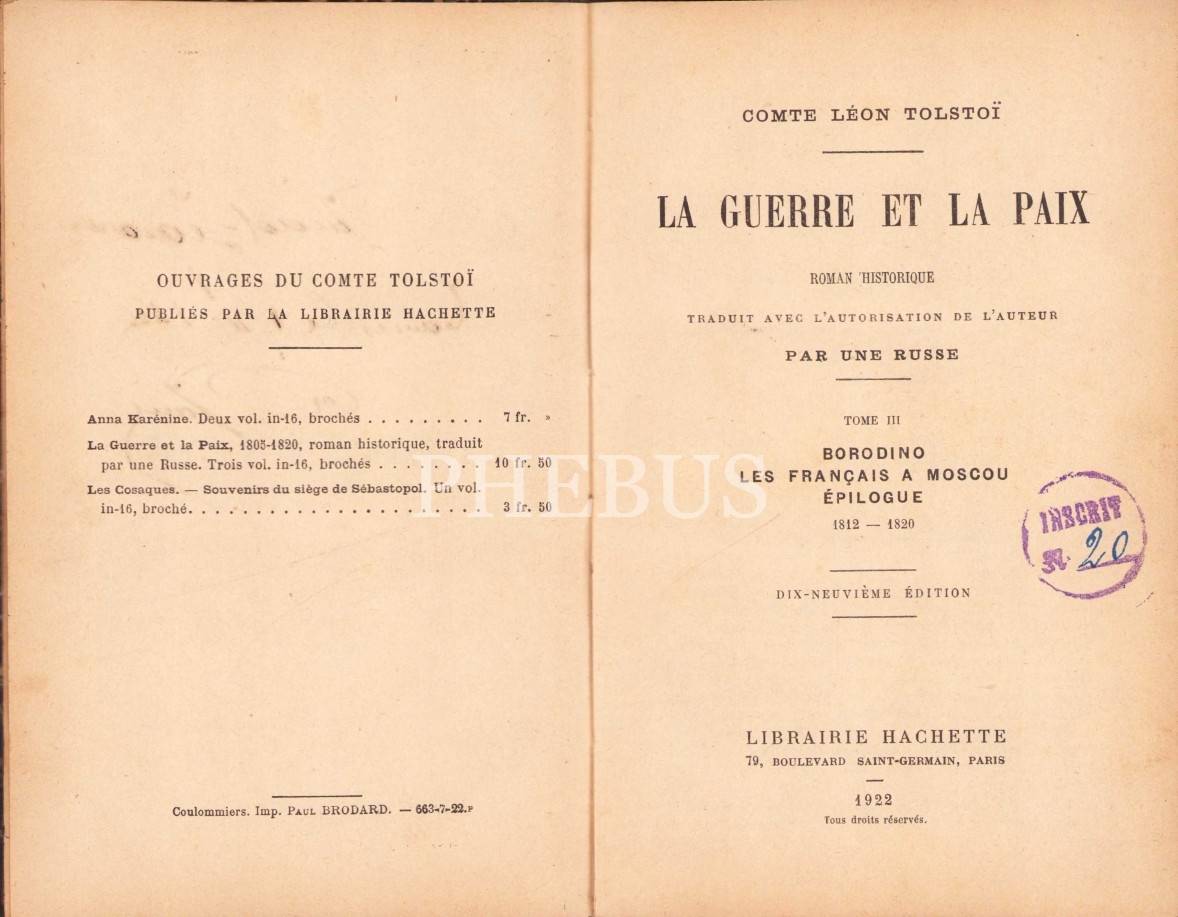 La Guerre Et La Paix [3. Cilt], Comte Leon Tolstoi, Paris 1922, 387 sayfa, 13x17 cm