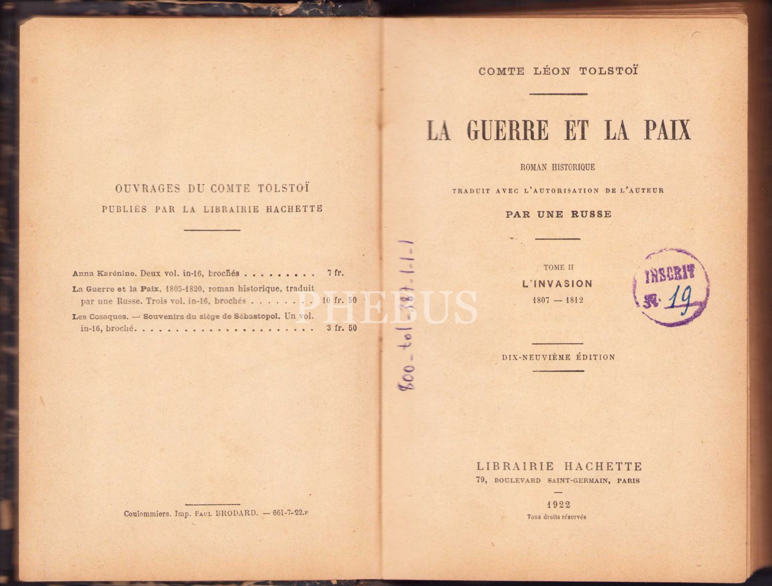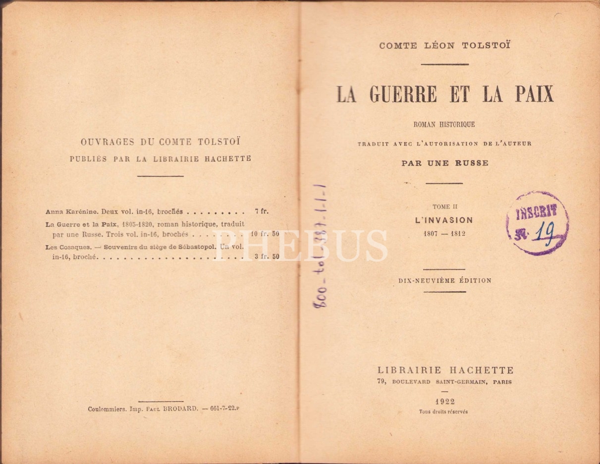 La Guerre Et La Paix [2. Cilt], Comte Leon Tolstoi, Paris 1922, 387 sayfa, 13x17 cm
