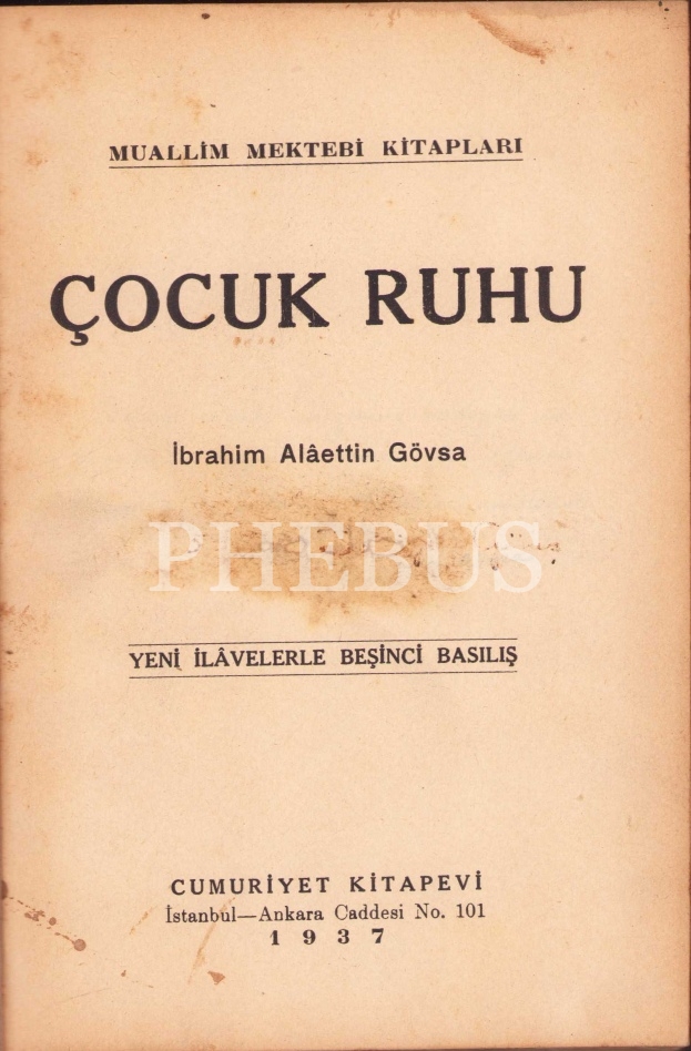 Çocuk Ruhu, İbrahim Alaettin Gövsa, Beşinci baskı, İstanbul 1937, 524 sayfa, 13x19 cm