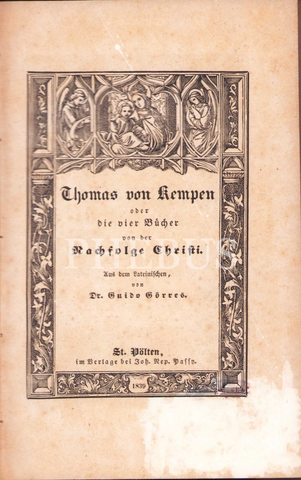 Thomas von Kempen oder die vier Bücher von der Nachfolge Christi, Guido Görres, Viyana 1839, Almanca, 200 sayfa, 12x20 cm