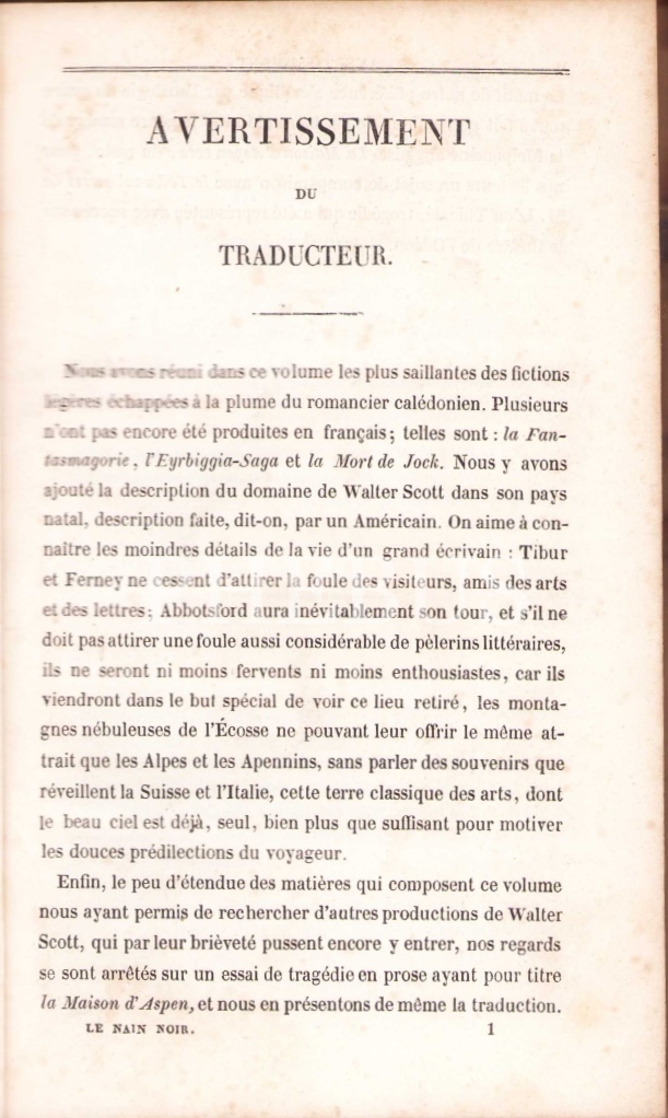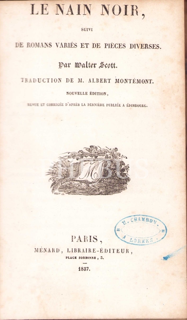 Le Nain Noir Suivi De Romans Varies Et De Pieces Diverses, Walter Scott, Paris baskı, 1837, 355 sayfa, 13x19 cm