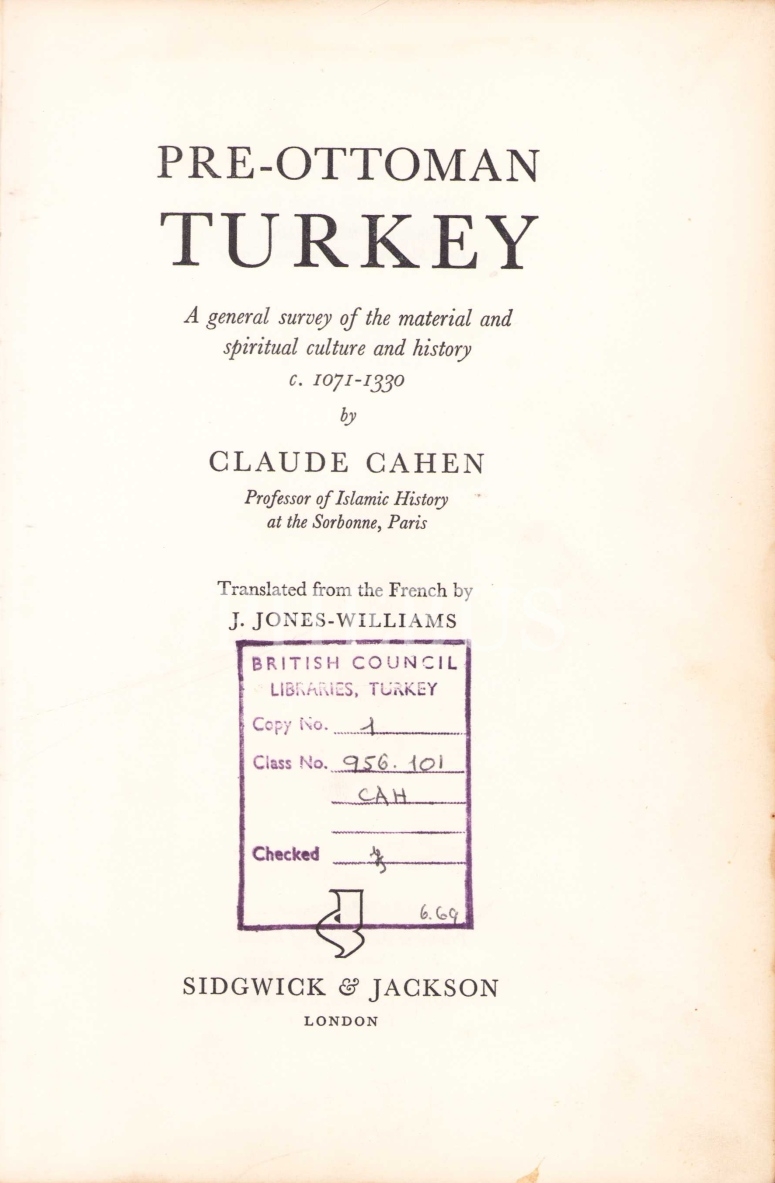 Pre-Ottoman Turkey [1071 - 1330] [Osmanlı Öncesi Türkiye], CLaude Cahen, Londra baskı 1968, 458 sayfa, 15x22 cm