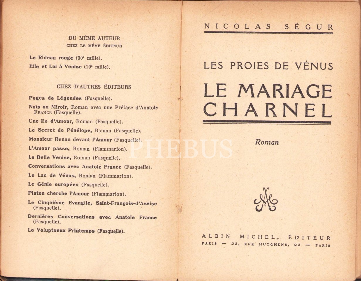 Les Proies De Venus Le Mariage Charnel - Roman - Nicolas Segur, Paris baskı, 1929, ciilt yıpranmış, 250 sayfa, 12x15 cm