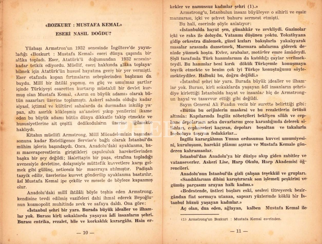 Armstrong'tan Bozkurt: Mustafa Kemal ve İftiralara Cevap, Derleyen: Sadi Borak, İstanbul 1955