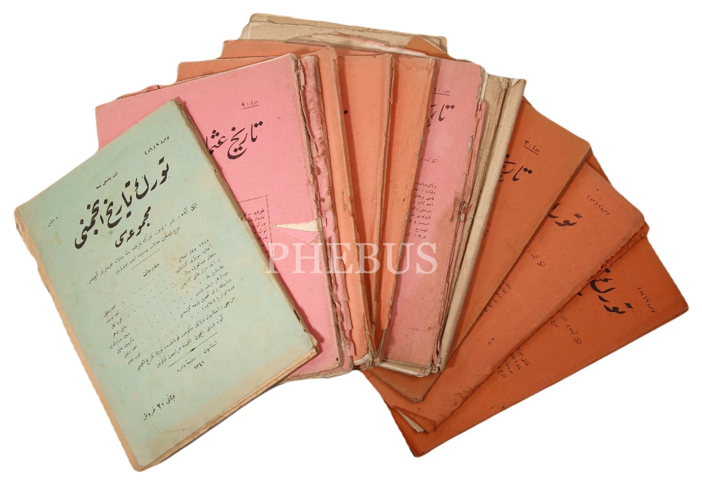 Osmanlıca Tarih-i Osmani Encümeni Mecmuası, muhtelif sayıları ile birlikte 18 sayı mevcuttur. Ahmet İhsan ve Şürekası Matbaası, bazı sayılar haliyledir. 17x24 cm
