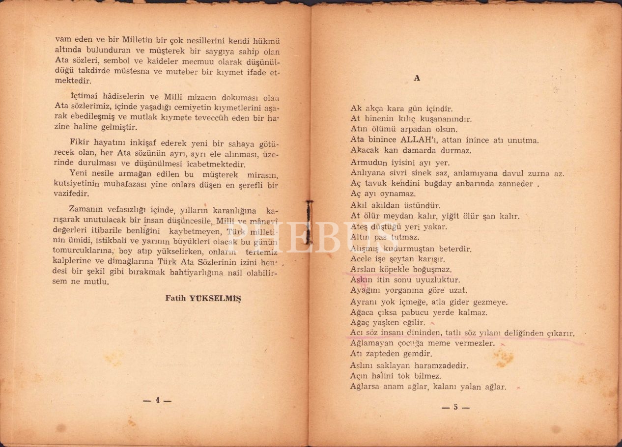 Türk Ata Sözleri, Fetih Yükselmiş, İstanbul 1960, 32 sayfa, 13x19 cm