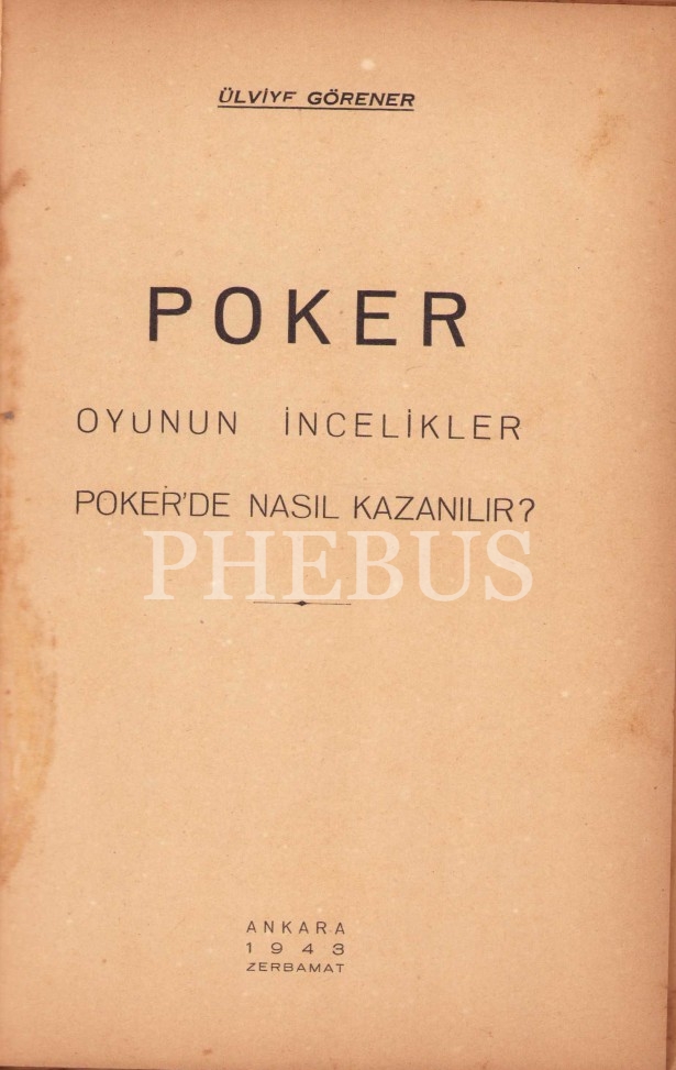 Poker Oyunun İncelikleri, Ülviye Görener, Ankara 1943, 30 sayfa, 14x19 cm