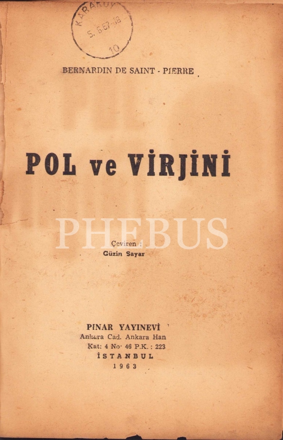 Pol ve Virjini, Bernardin De Saint Pierre, İstanbul 1963, 107 sayfa, 13x20 cm