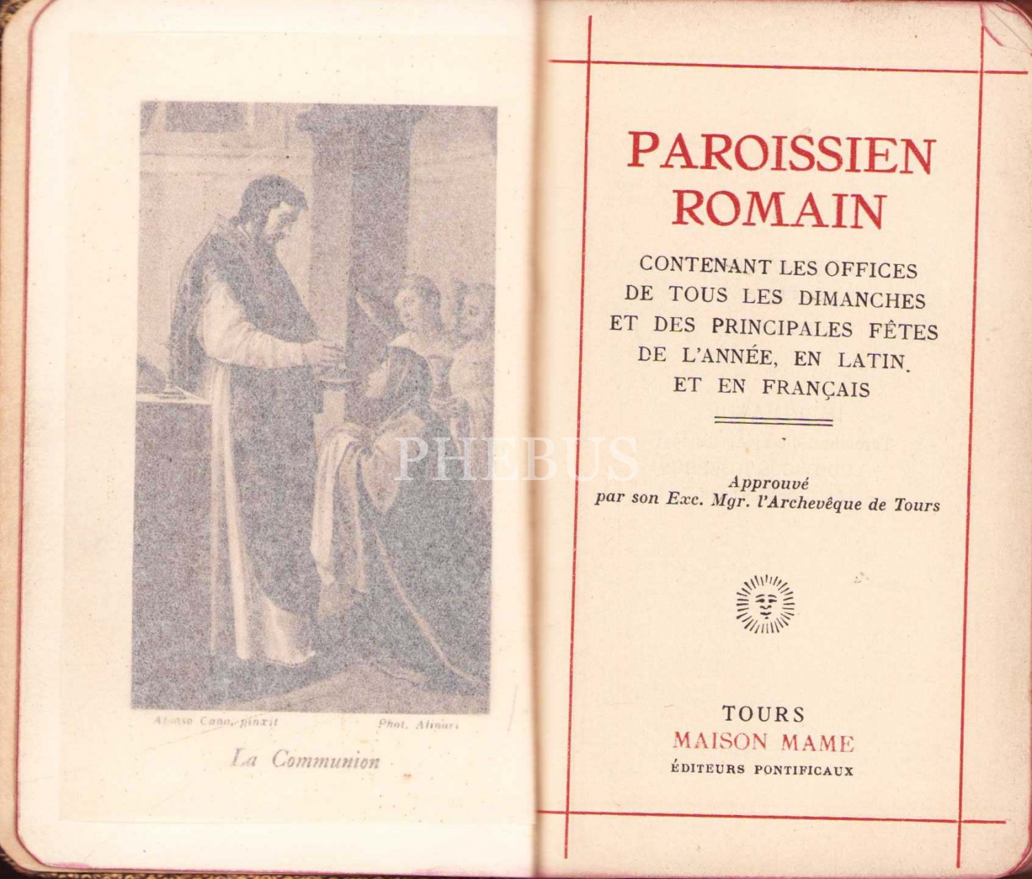 Paroissien Romain, Tours, 1933, Fransızca dini kitap, 888 sayfa, 7x11 cm