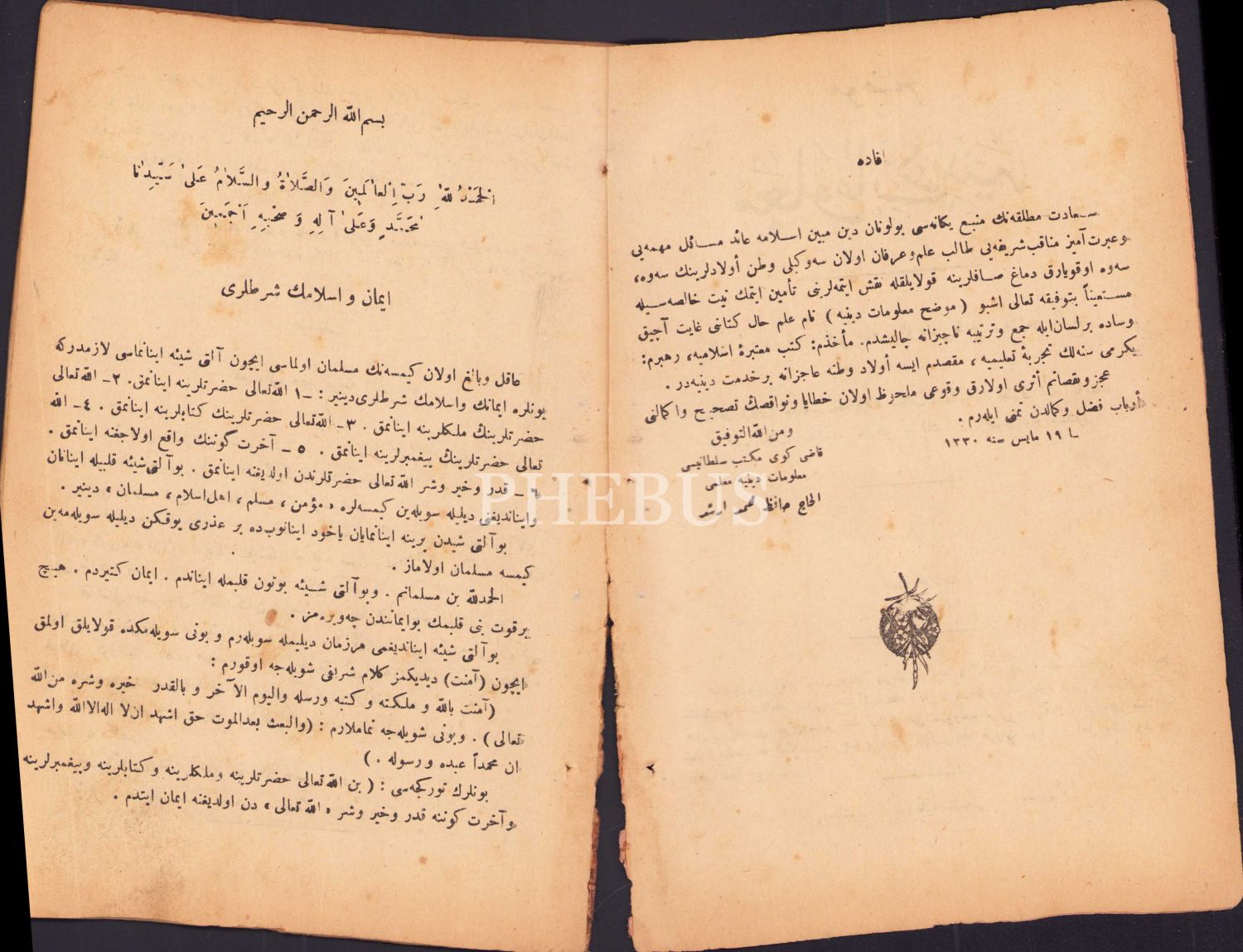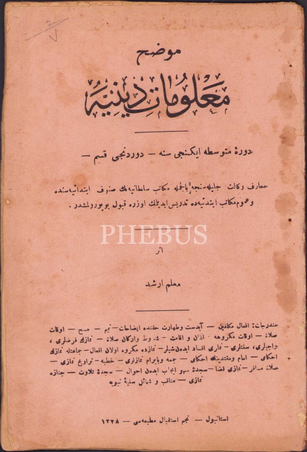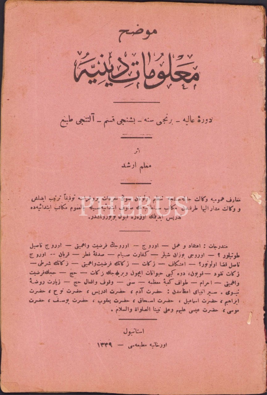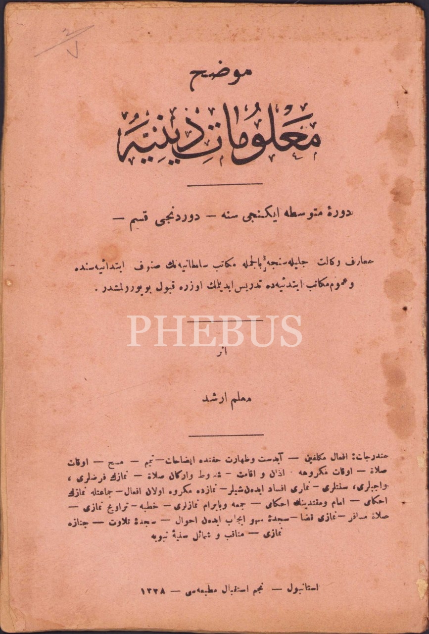 Osmanlıca Muvazzah Malûmât-ı Diniye'ye ait 4 sayı bir arada, Muallim Erşed, Orhaniye Matbaası, İstanbul 1339, 14x22 cm