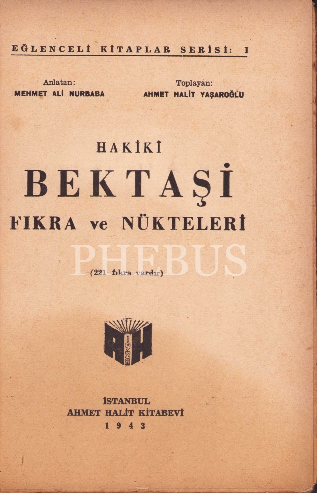 Hakiki Bektaşi Fıkra ve Nükteleri, Mehmet Ali Nurbaba, İstanbul 1943, sırtı haliyle