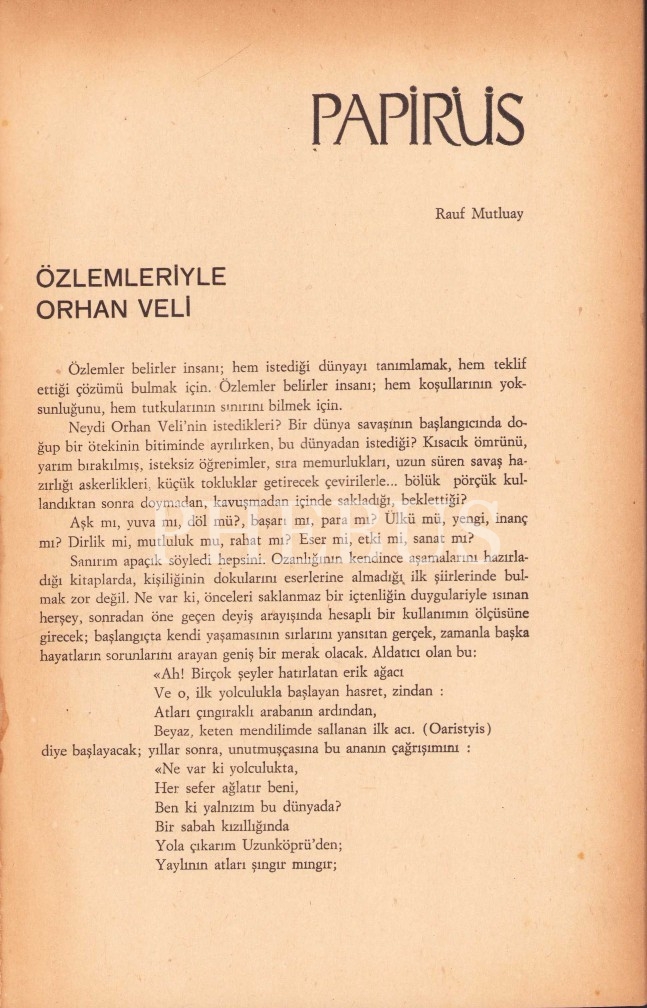 Cemal Süreya'nın Çıkardığı Papirus Dergisi'nin Orhan Veli Özel Sayısı, 1967, 58 sayfa, 15x23 cm