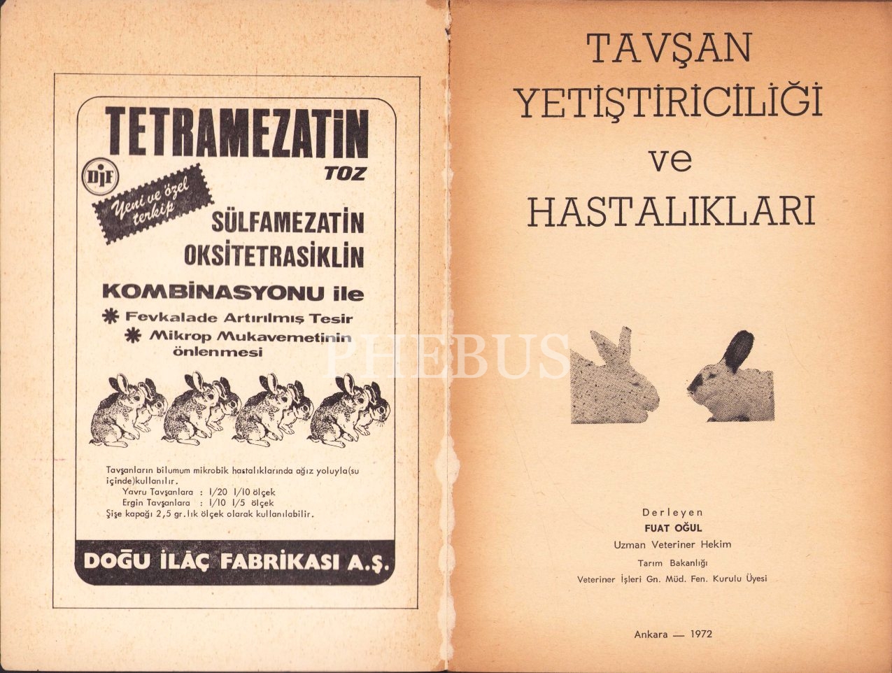 Tavşan Yetiştiriciliği ve Hastalıkları, Derleyen Fuat Oğul, Ankara 1972, 74 sayfa, 14x20 cm