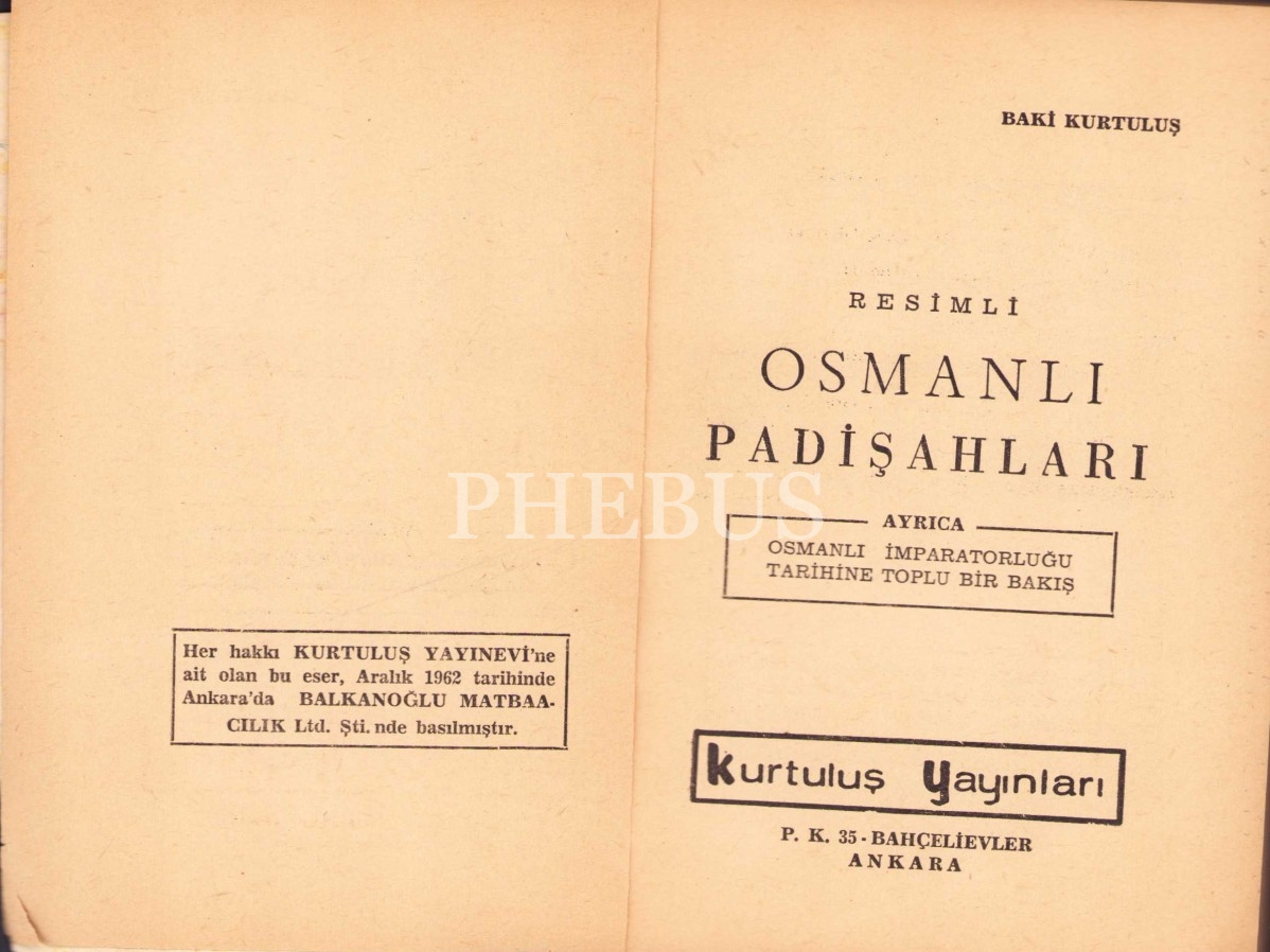Resimli Osmanlı Padişahları, Baki Kurtuluş, Ankara 1962