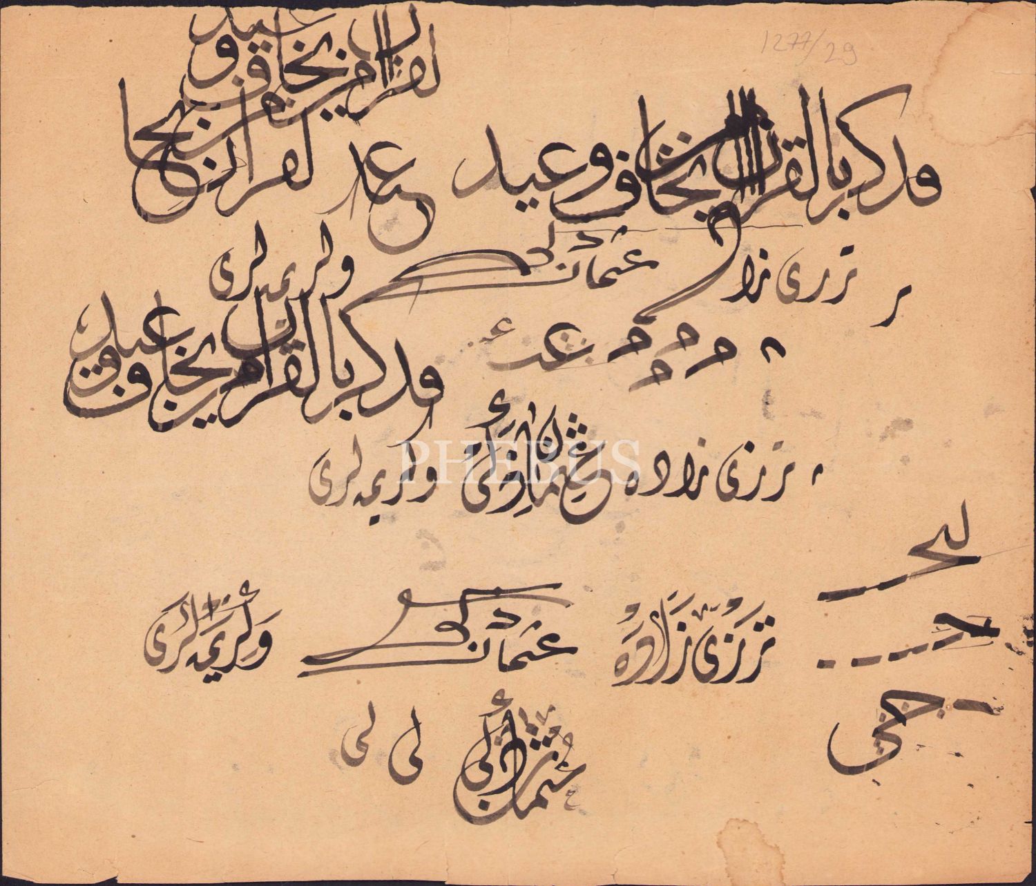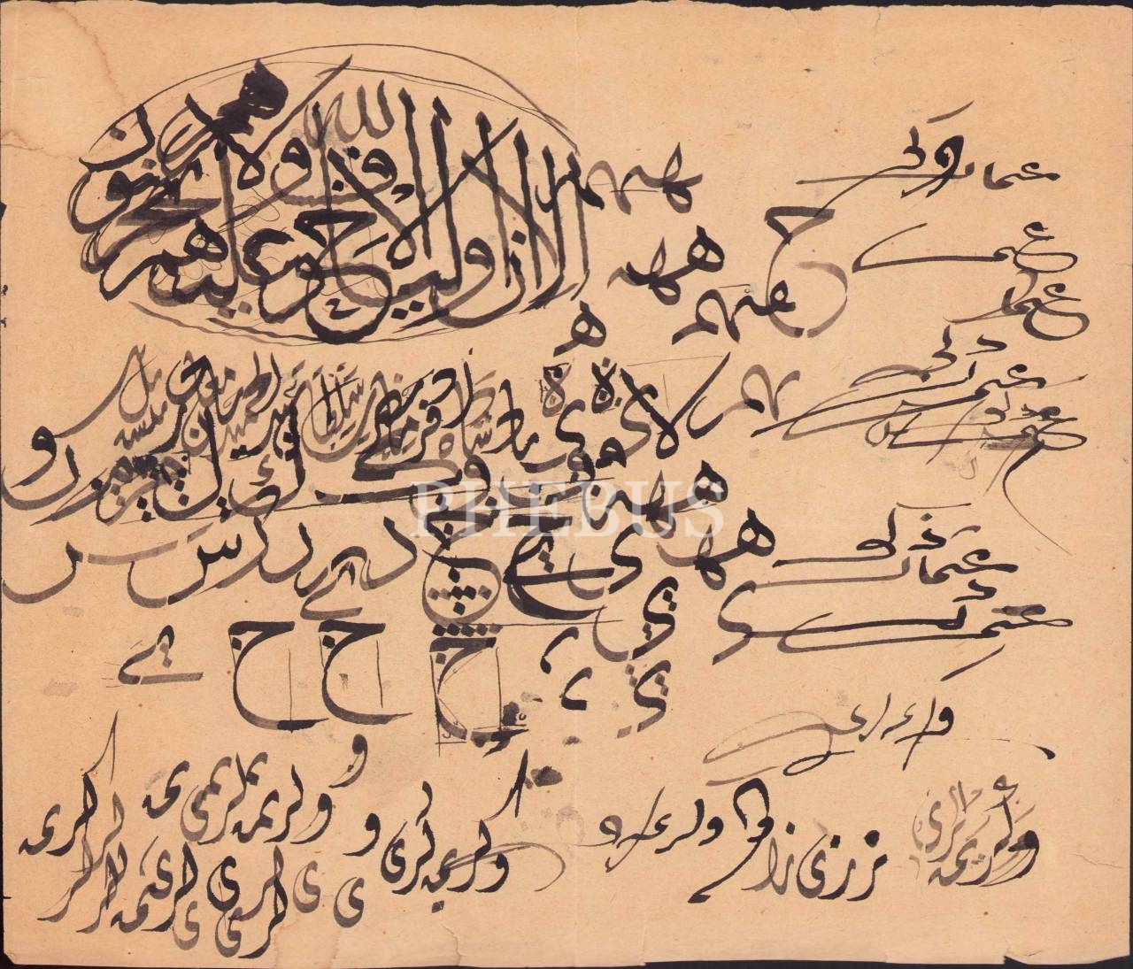 Hattat Halim Özyazıcı terekesinden önlü arkalı Sülüs Talik Divani Karalama, 22x26 cm