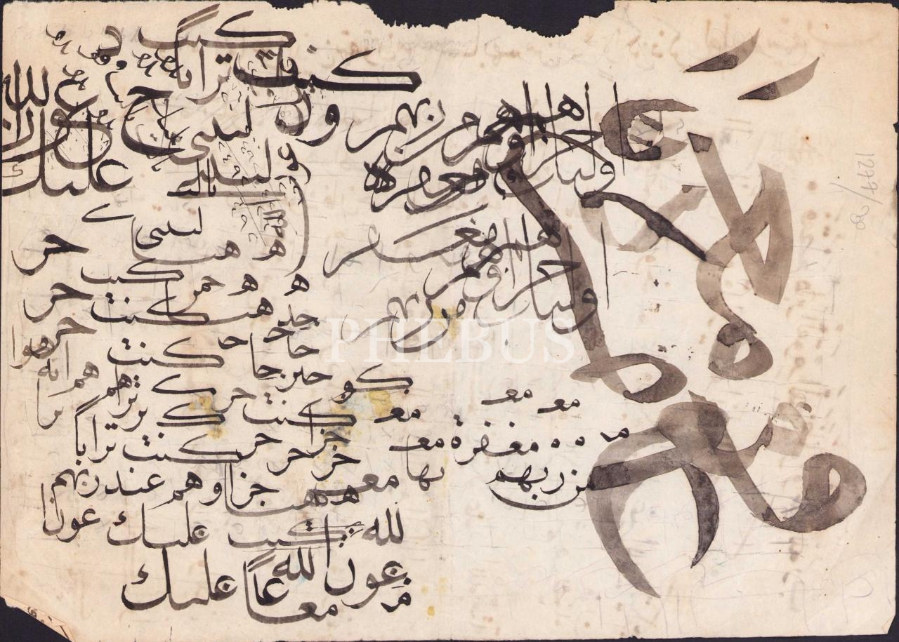 Hattat Halim Özyazıcı terekesinden arkalı önlü Sülüs Nesih Karalama, 20x28 cm