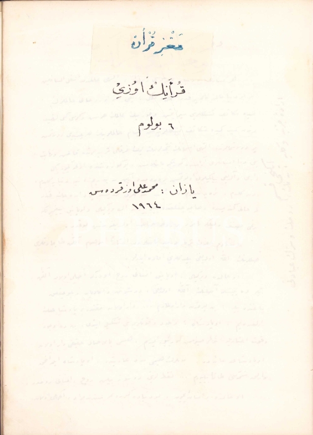 Kadiri Şeyhi Mehmed Ali Özkardeş'in Kur'an'ın Özü başlıklı eserinin el yazması müsveddesi, İkinci Bölüm, 1964 tarihli, 55 sayfa, 17x24 cm