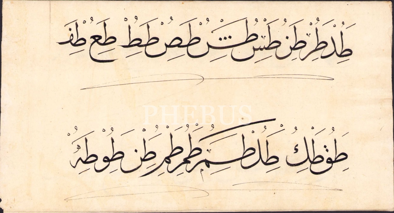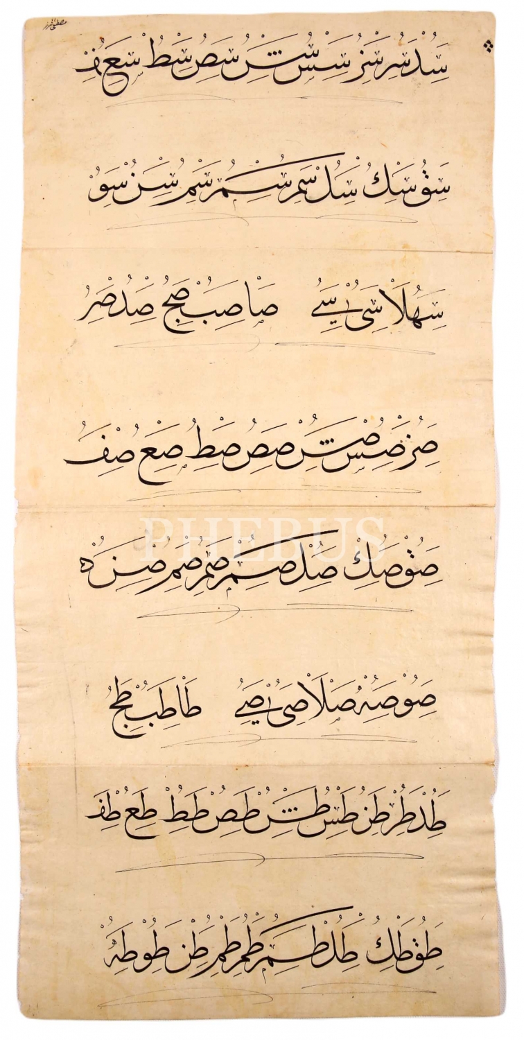 Sülüs Nesih Hurufat Meşki, sol köşede Osmanlıca "Mustafa Efendi" notu mevcut, 22x47 cm