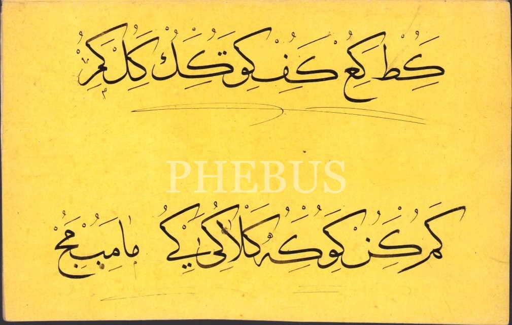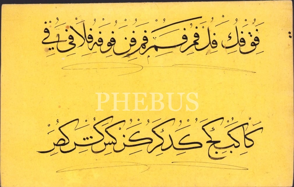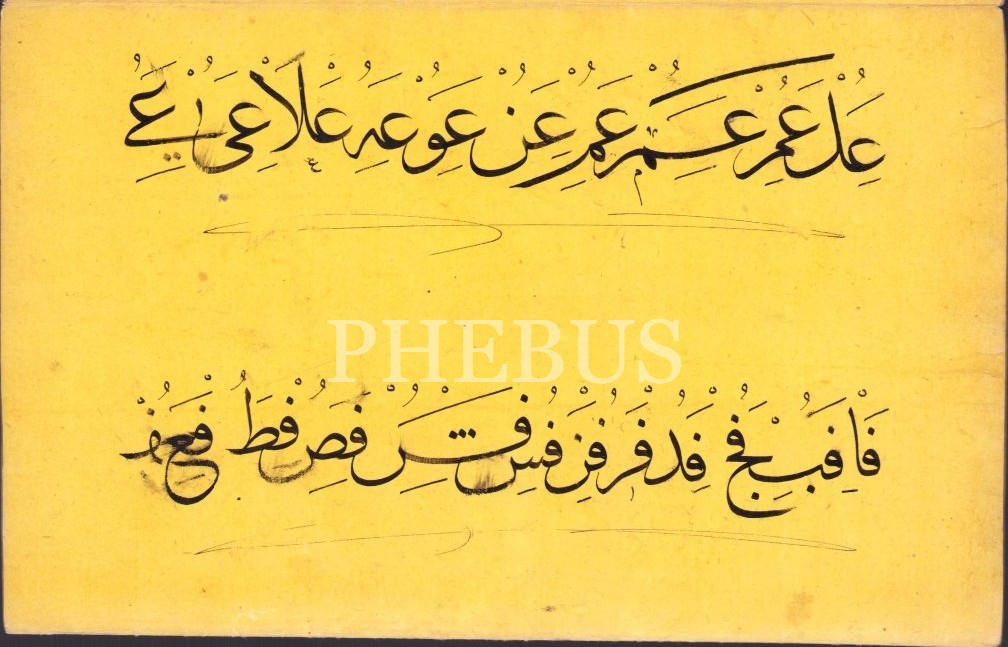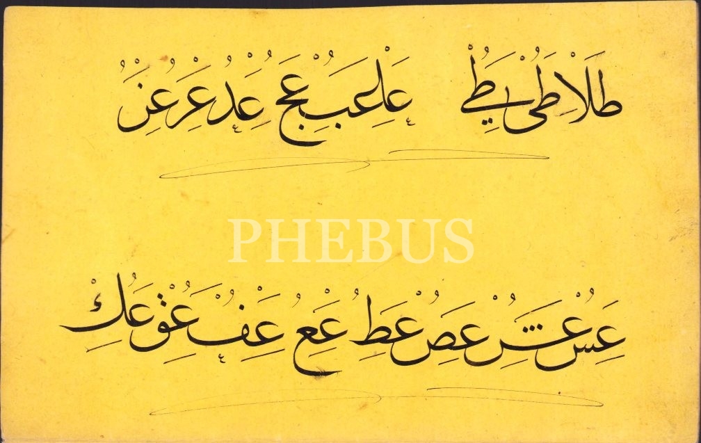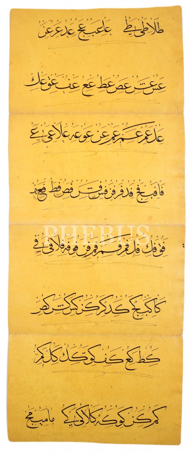 Erken Dönem Sülüs Hurufat Meşki, sarı renk aharlı kağıda, 20x80 cm