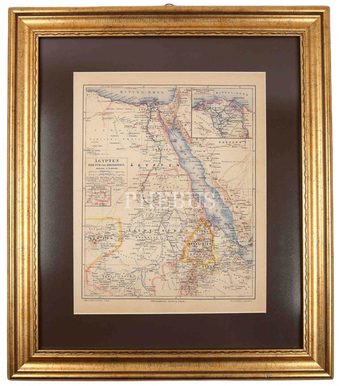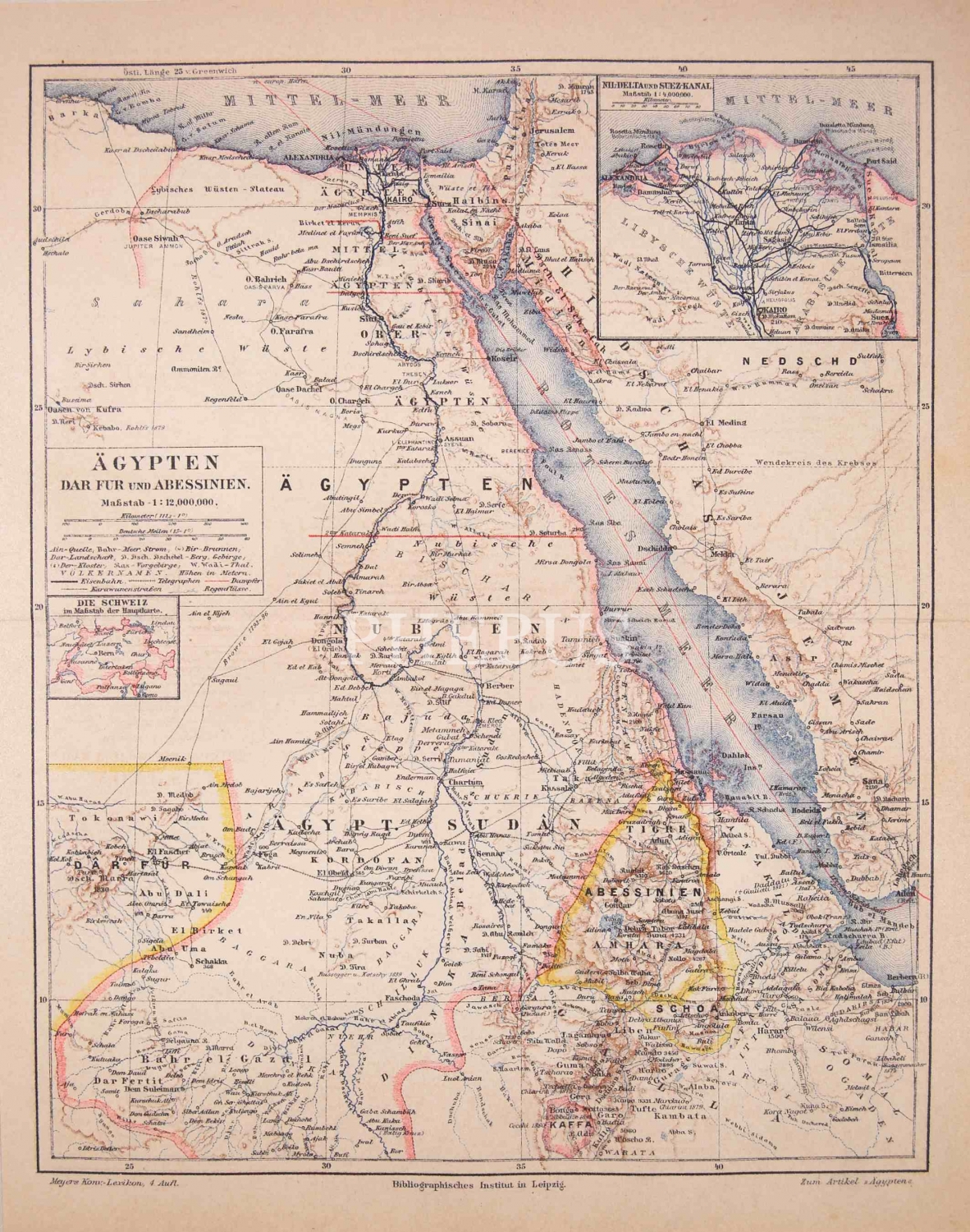 Almanca Mekke-i Mükerreme ve Medine-yi Münevvere'nin de bulunduğu Mısır Haritası, Leipzig baskı, 23x29 cm