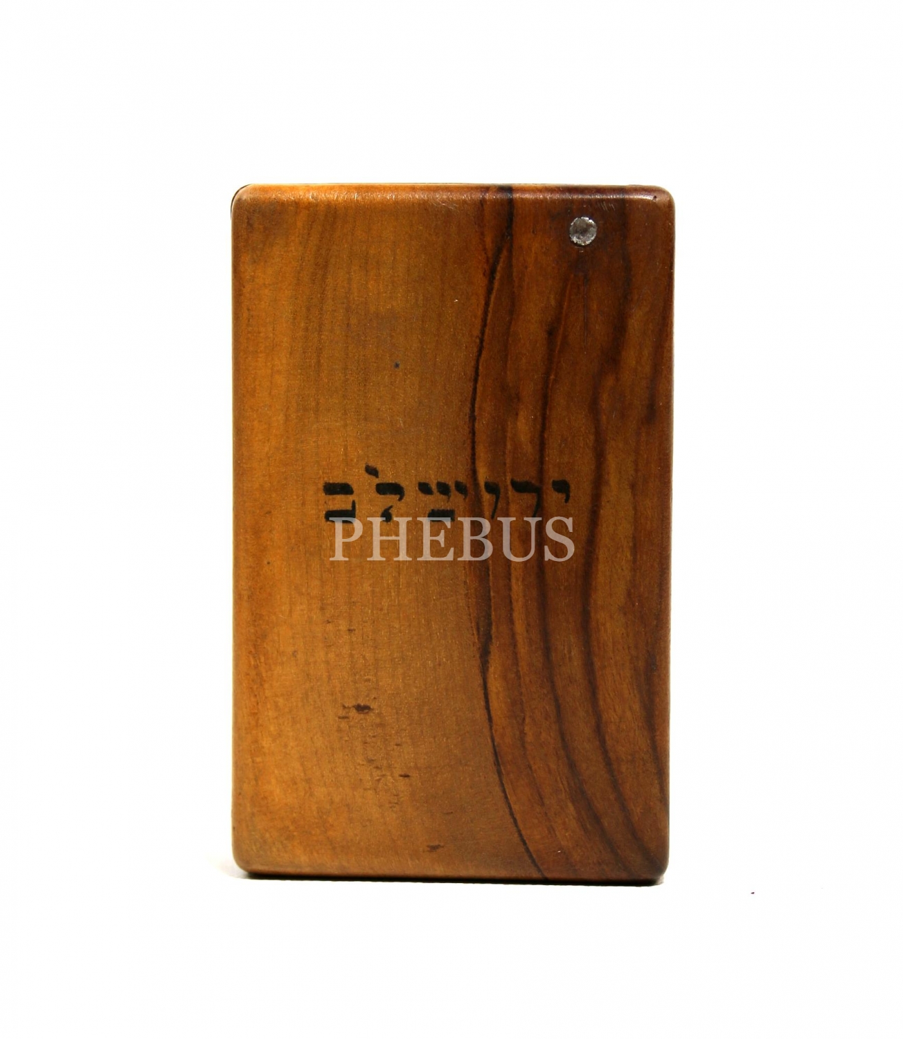 Zeytin Ağacından mamul İbranice Jerusalem yazılı kibritlik, 7x4x2 cm