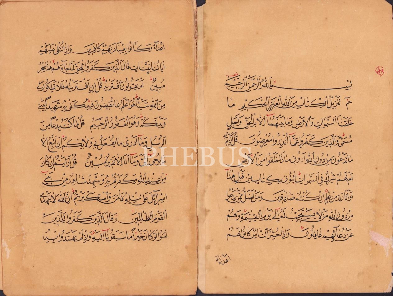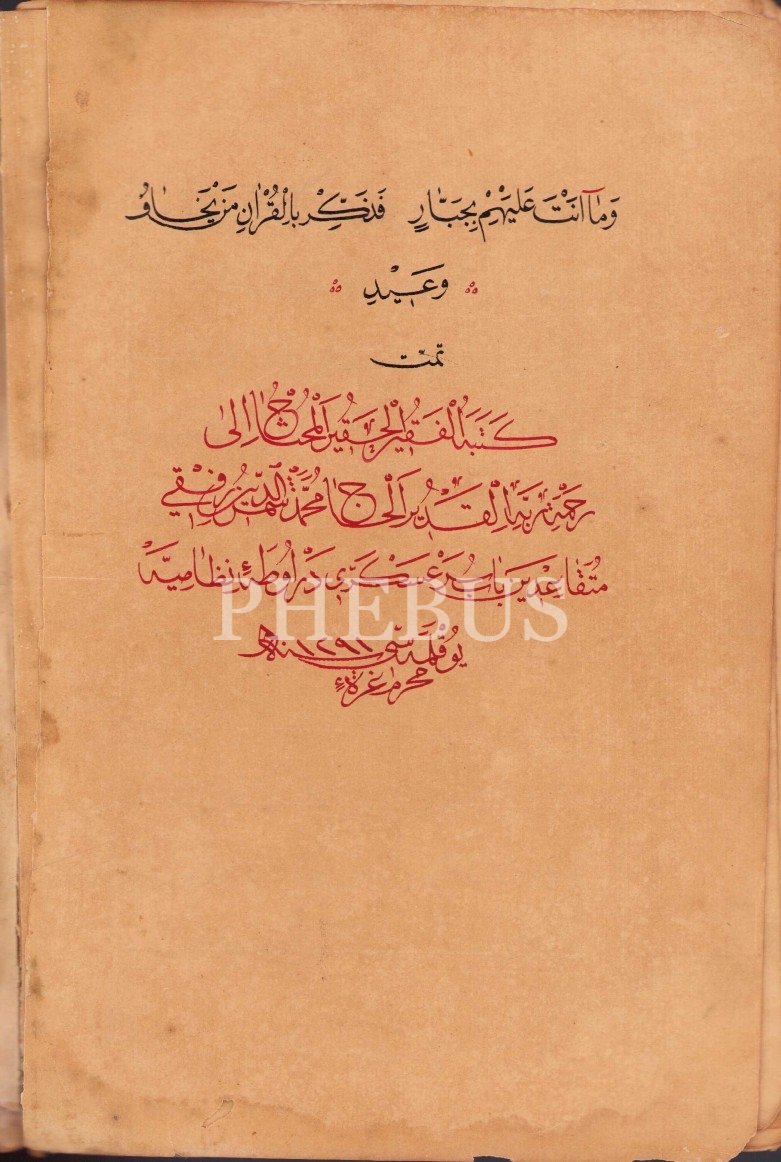 Bab-ı Seraskeri'den Emekli Hattat Mehmed Şemseddin ketebeli Ahkaf Suresi, 1291 tarihli, Nesih, 13 varak, 17x25 cm