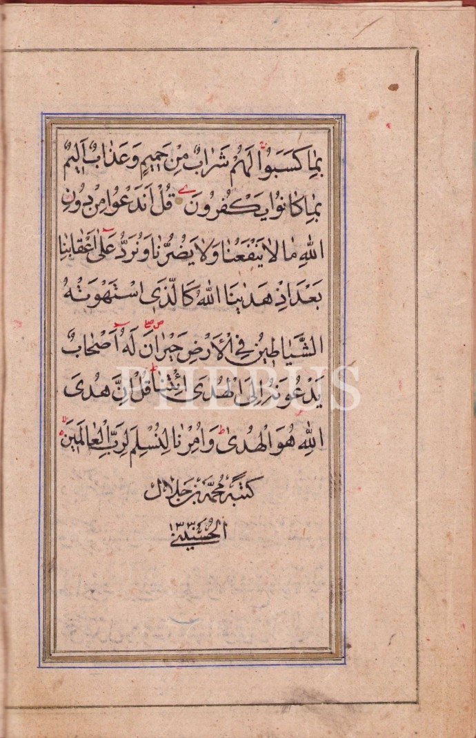 El Yazması Kuran Cüzü, Muhammed b. Celal El-Hüseyni, 1330 tarihli, dönem tezhipli, deri cildinde,5 varak, 14x22 cm