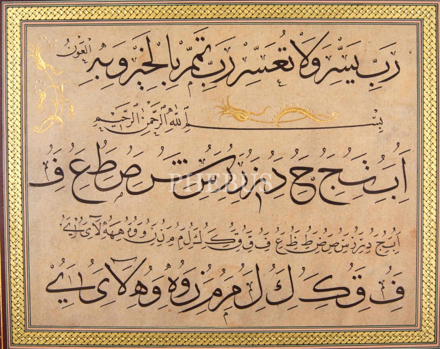 Sülüs Nesih Rabbi Yessir Duası, Besmele ve Hurufat Meşki, altın zencirekli, tezhip: Eda Funda, 20x15 cm