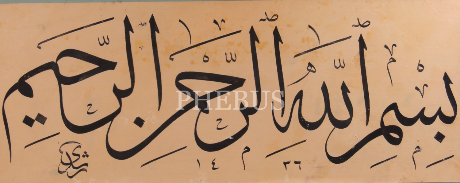 Celi Sülüs Besmele-i Şerife, Rüşdi ketebeli, 1436 tarihli, 50x20 cm