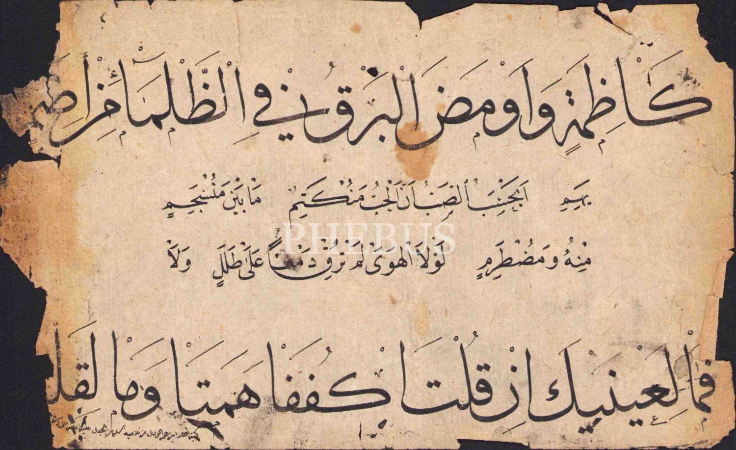 Erken Dönem Hoca İşi Sülüs Nesih Kaside Meşki, alt kısmında "İbrahim Vidini [Vidinli]" yazılı, 20x13 cm