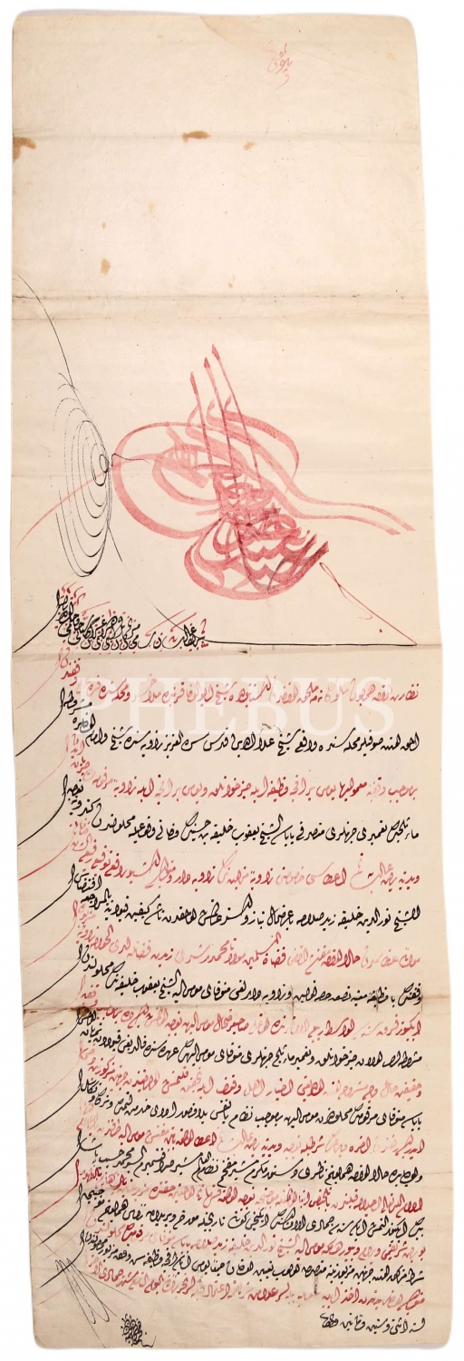 Sultan Abdülmecid Han Dönemi İstanbul'da Sultan Alaeddin Zaviyesi'ne Dair El Çekme Tuğralı Vazife Beratı, 1262 tarihli, 23x75 cm