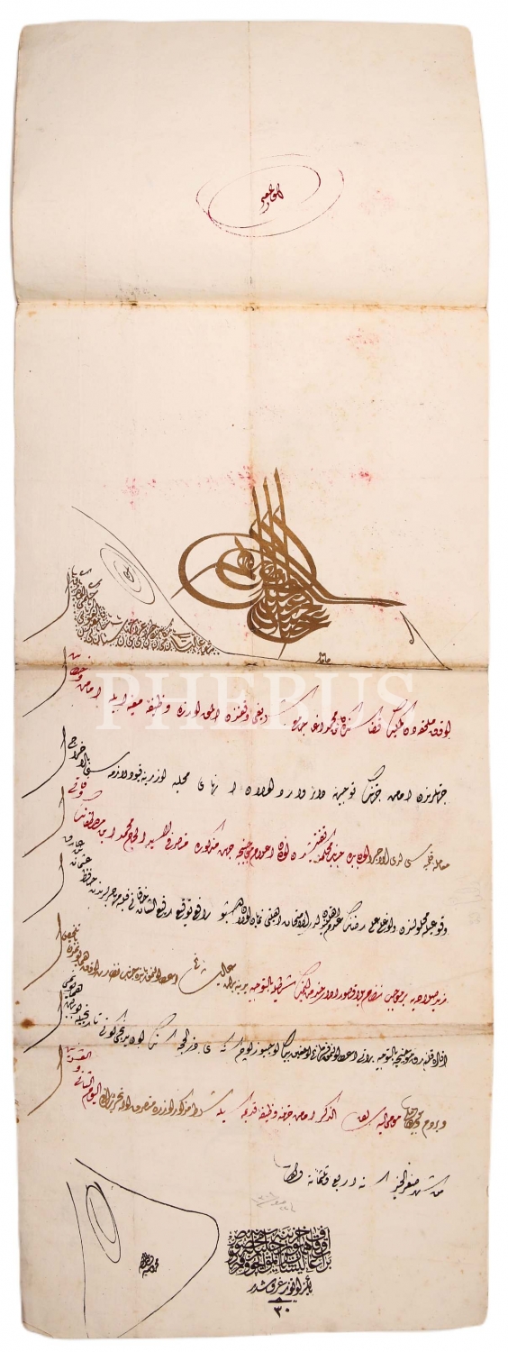 Sultan Abdülhamid Han Dönemi Gemlik Kazası'nda Mehmed Ağa Camii'ne Dair 1303 tarihli Vazife Tayin Beratı, 28x77 cm
