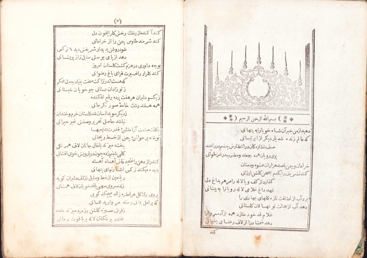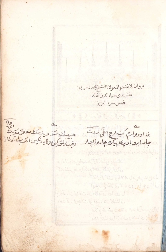 Nakşibendiyye Tarikatının Hâlidiyye Kolunun Kurucusu Mevlana Nakşibendi Ziyaeddin Halid'in Osmanlıca Taş Baskı Divanı, 99 sayfa, 1260 tarihli, dönem ebrulu cildinde, 15x22 cm