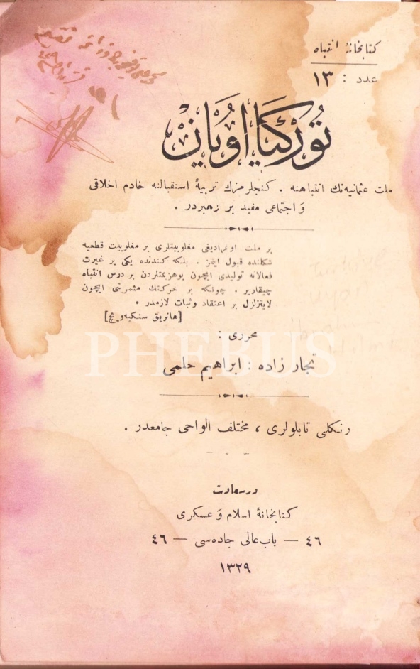Bab-ı Ali'nin İlk Yayıncılarından Yazar Tüccarzade İbrahim Hilmi Çığıraçan'dan İmzalı ve İthaflı Osmanlıca "Türkiye Uyan", İstanbul, 1329 tarihli, 248 sayfa, cildi haliyle, 12x20 cm