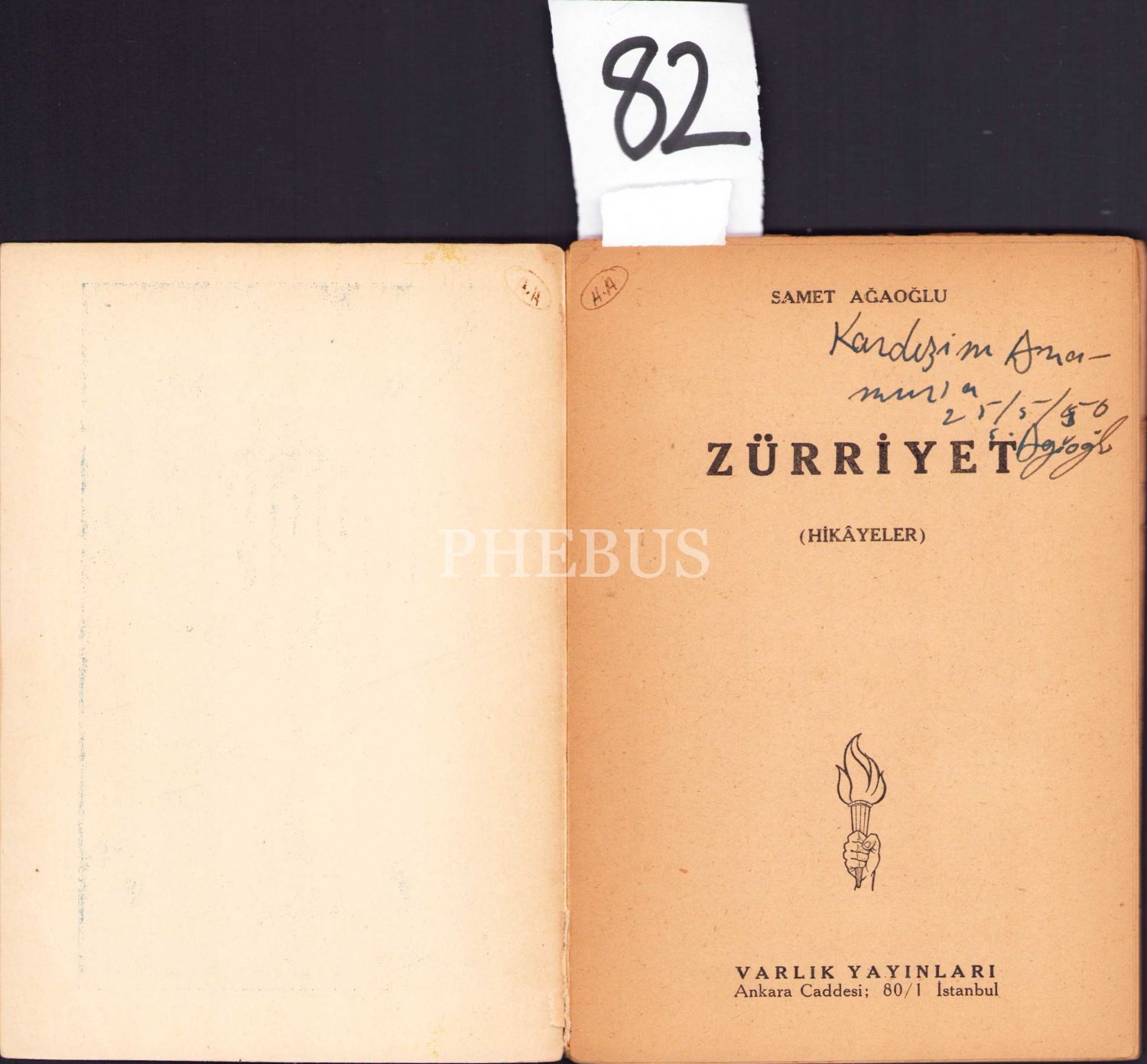 Yazar Samet Ağaoğlu'ndan İmzalı ve İthaflı "Zürriyet" -hikayeler- ilk baskı, 1950, 112 sayfa, 13x18 cm