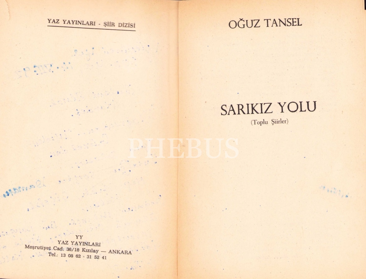 Şair Oğuz Tansel'den İmzalı ve İthaflı "Sarıkız Yolu" -Toplu Şiirler- İlk Baskı, 1986, 170 sayfa, 14x20 cm