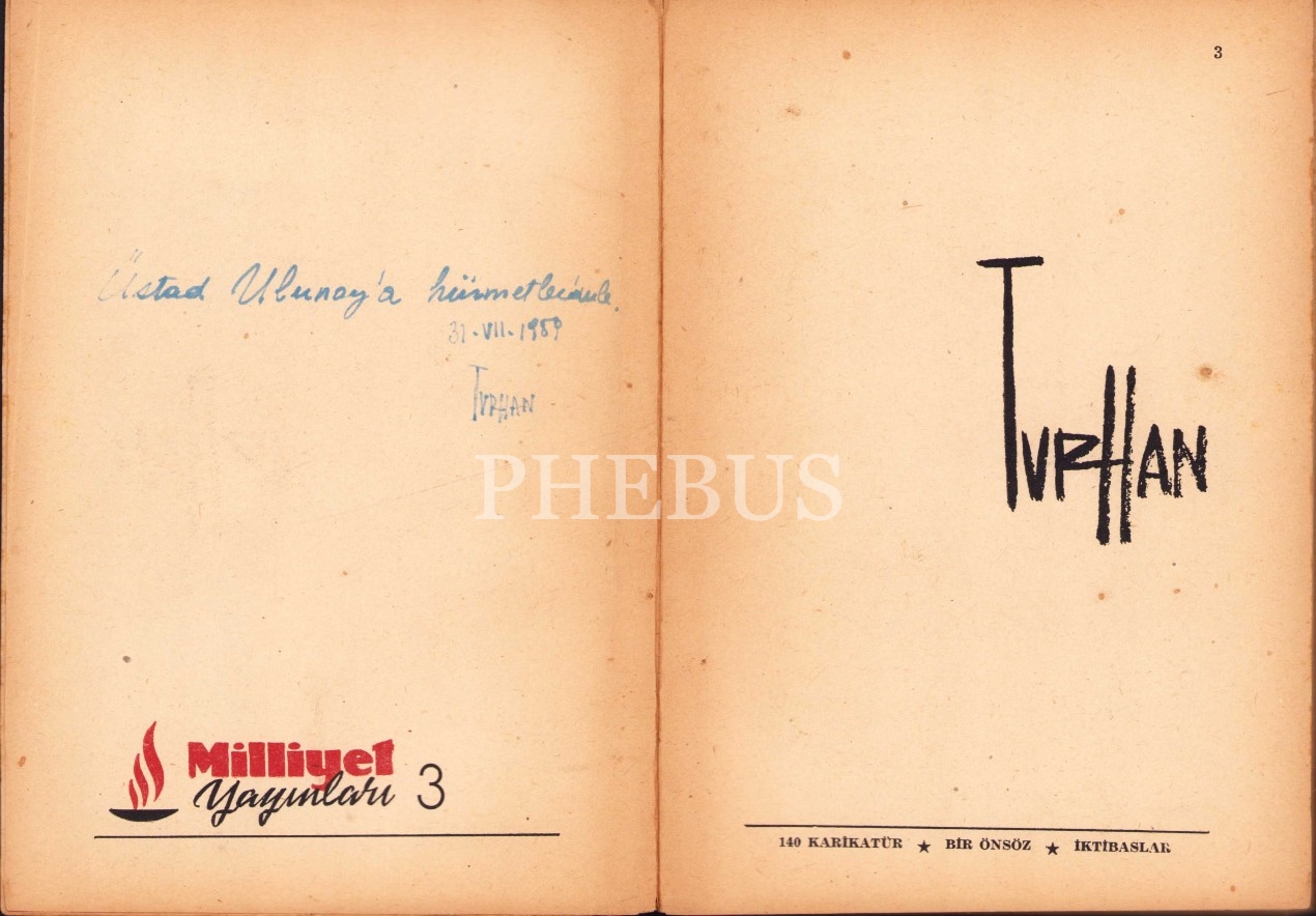 Karikatürist Turhan Selçuk'dan Üstad Ref'i Cevad Ulunay'a ithaflı ve imzalı, Abdi İpekçi önsözlü,karikatür kitabı: "Turhan", Milliyet Yayınları, 174 sayfa, 15x20
