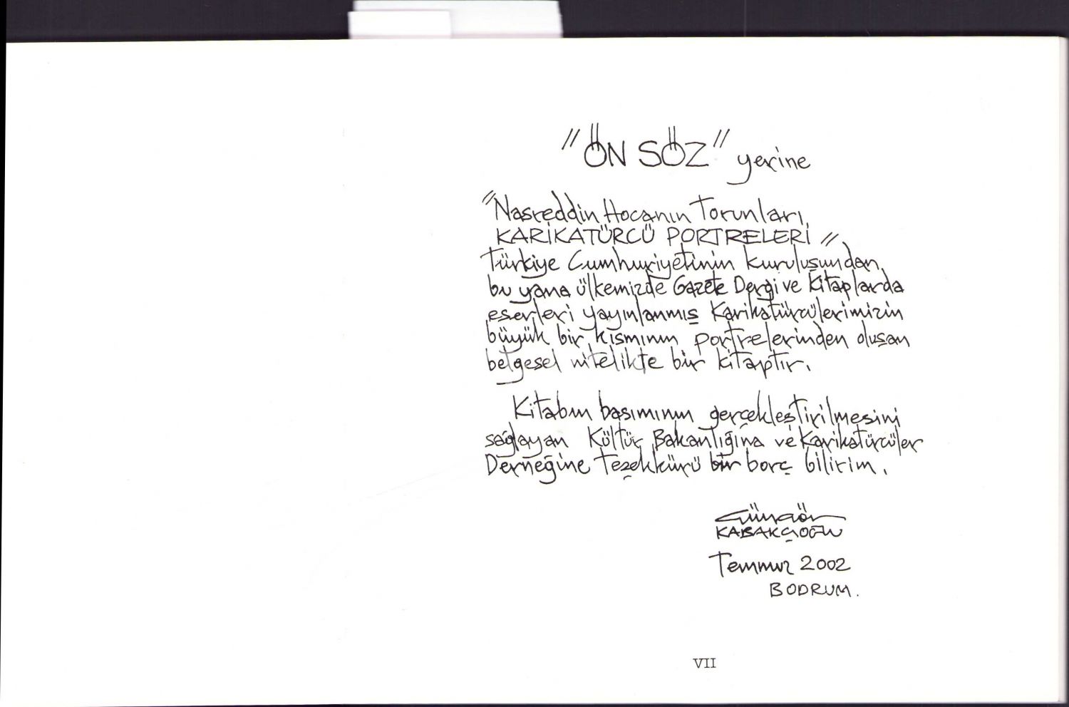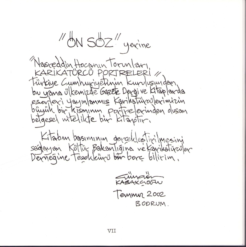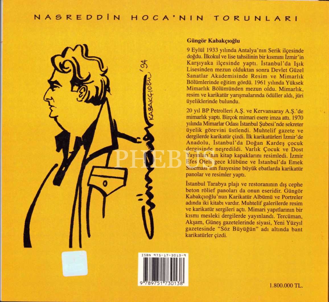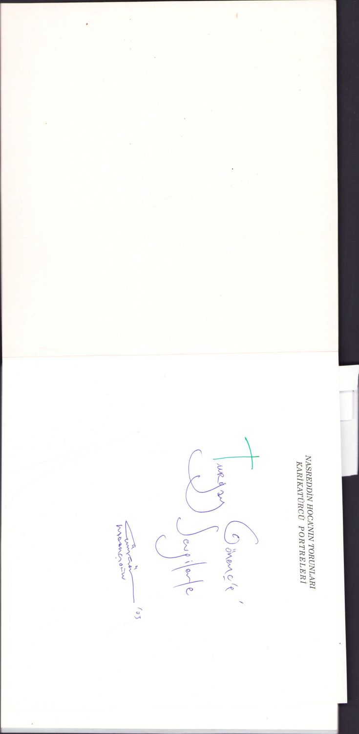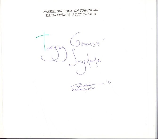 Karikatürist Güngör Kabakçıoğlu'ndan Ressam Turgay Gönenç'e ithaflı ve imzalı "Nasreddin Hoca'nın Torunları Karikatürcü Portreleri", T.C. Kültür Bakanlığı Yayınları, 2002, 95 sayfa, 19x18 cm