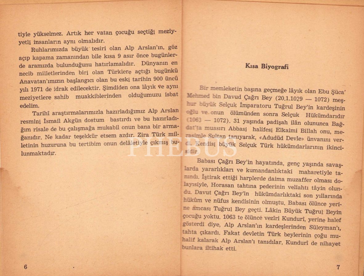 Ahmed Süheyl Ünver'den Bugünkü Türkiyemizin İlk Banisi Alp Arslan, İstanbul, 1960, 15 sayfa, 11x16 cm