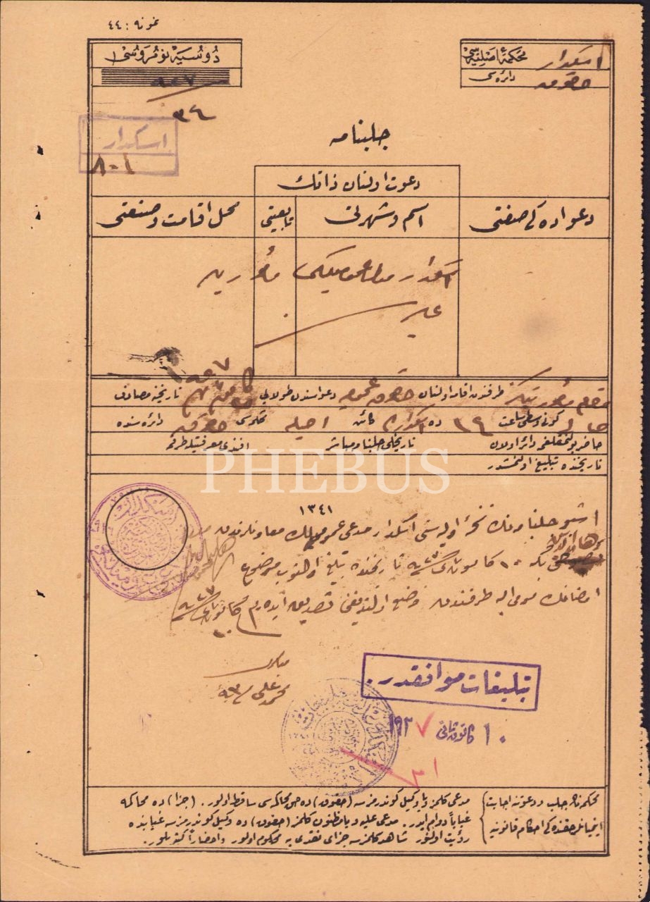 Osmanlıca celpname, Üsküdar, 1927, 16x23 cm