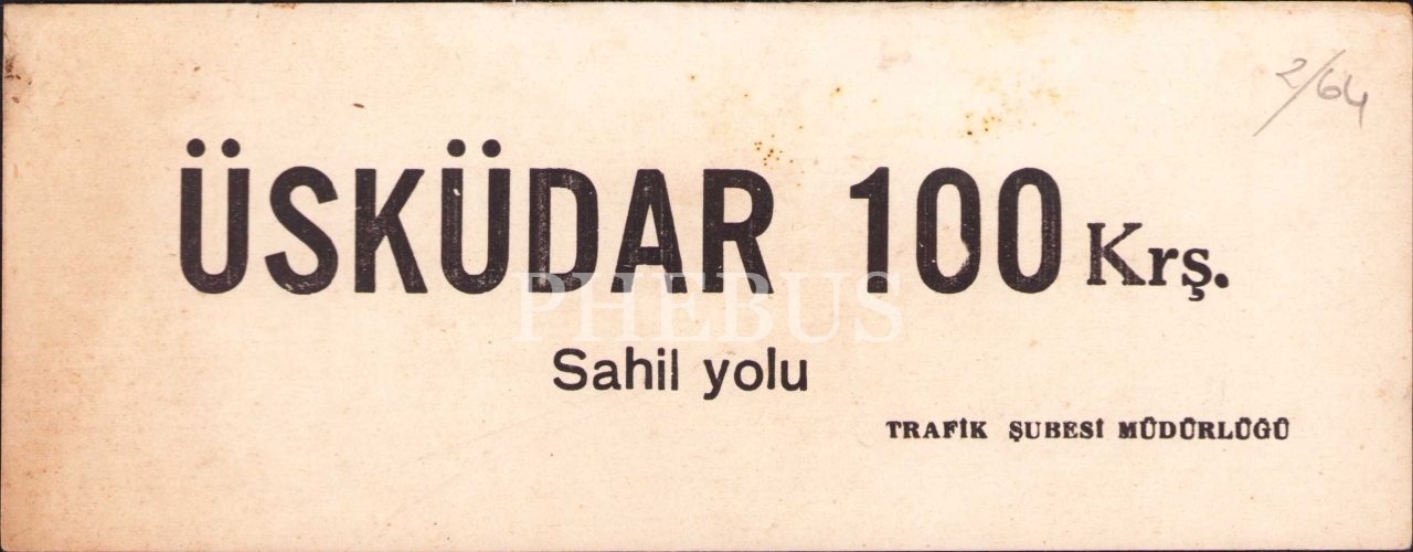 Çift taraflı Üsküdar ve Çengelköy sahil yolu fiyatı gösterir dolmuş kartı, 8x22 cm