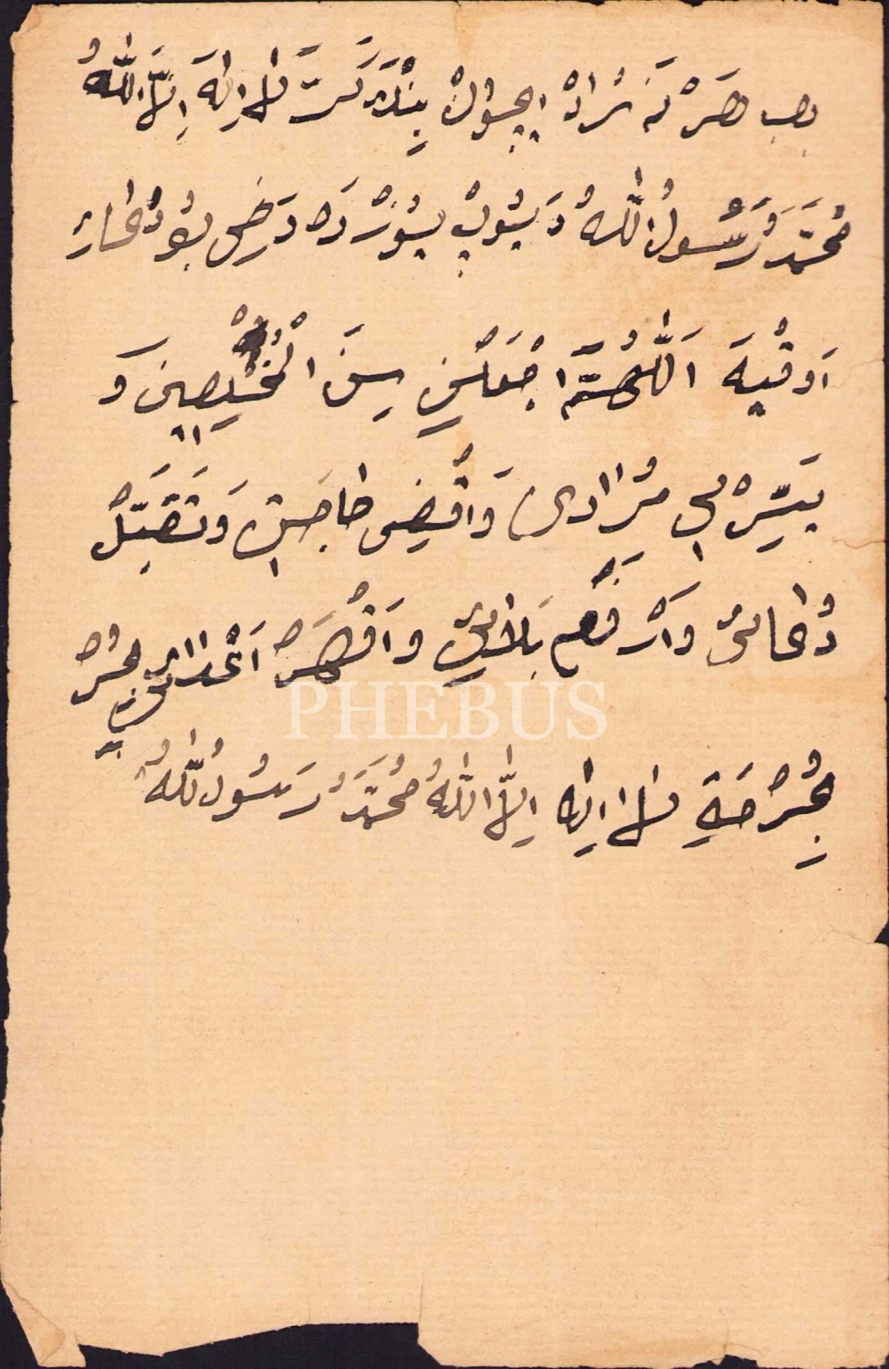 Osmanlıca el yazması bir dua kağıdı, 11x18 cm