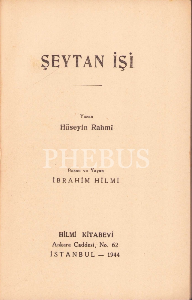 Şeytan İşi, Hüseyin Rahmi, Hilmi Kitabevi - İstanbul 1944, 95 sayfa, 12x18 cm
