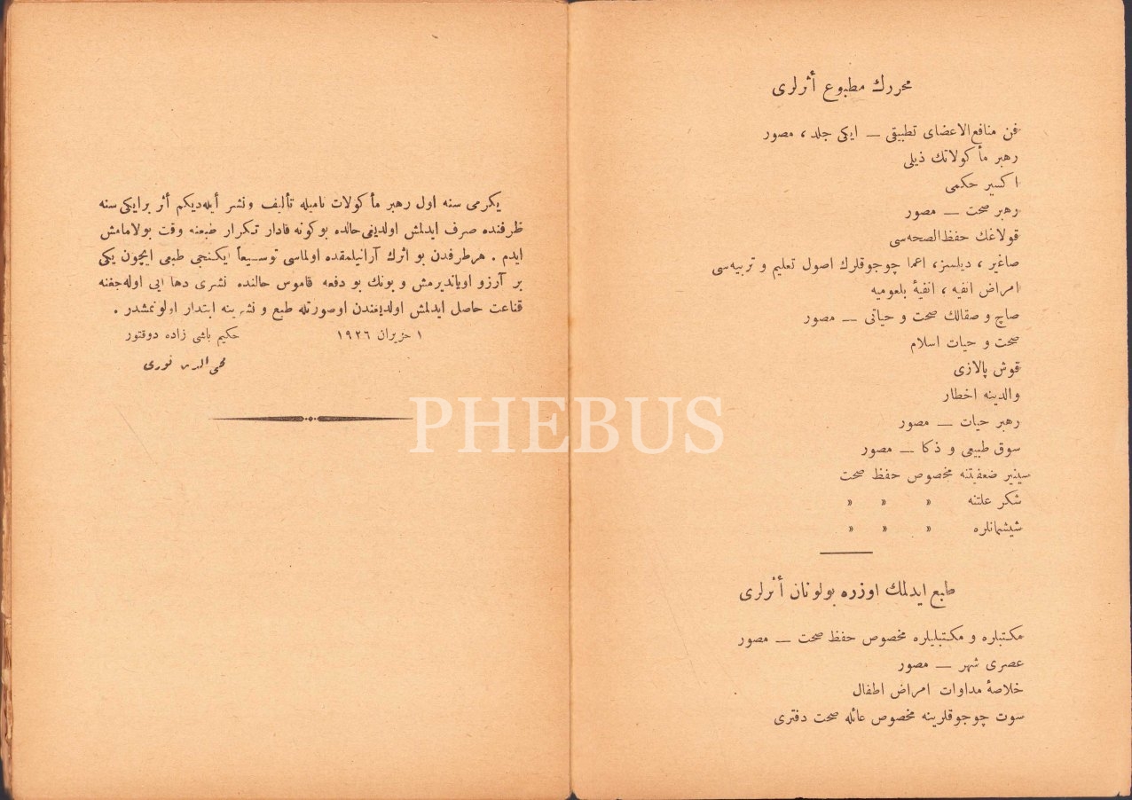 Osmanlıca Rehber-i Me'kulât, Hekimbaşızade Doktor Muhyiddin Nuri, Ahmed Kamil Matbaası, İstanbul 1927, 188 syf., 14x20 cm, sırtı haliyle