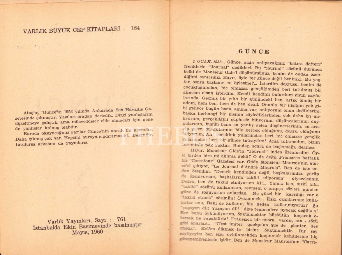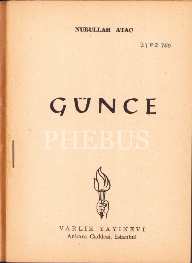 Günce, Nurullah Ataç, Varlık Yayınları, İstanbul 1960, 94 syf., 12x16 cm